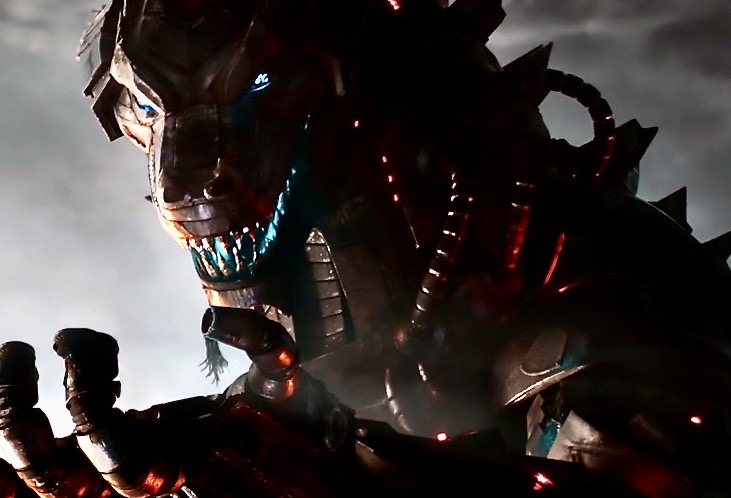 Suddenly the sky boomed and cracked, and a lightning bolt zig zagged down from a mass of black clouds. It hit MechaGodzilla on the top of the head and stopped him dead in his tracks. Every part of him went crazy and he lit up like a carnival sideshow. When the show was over the new-age Frankenstein toppled over, smoke dribbling out of the seams of him. He lay there like a heap of scrap metal.